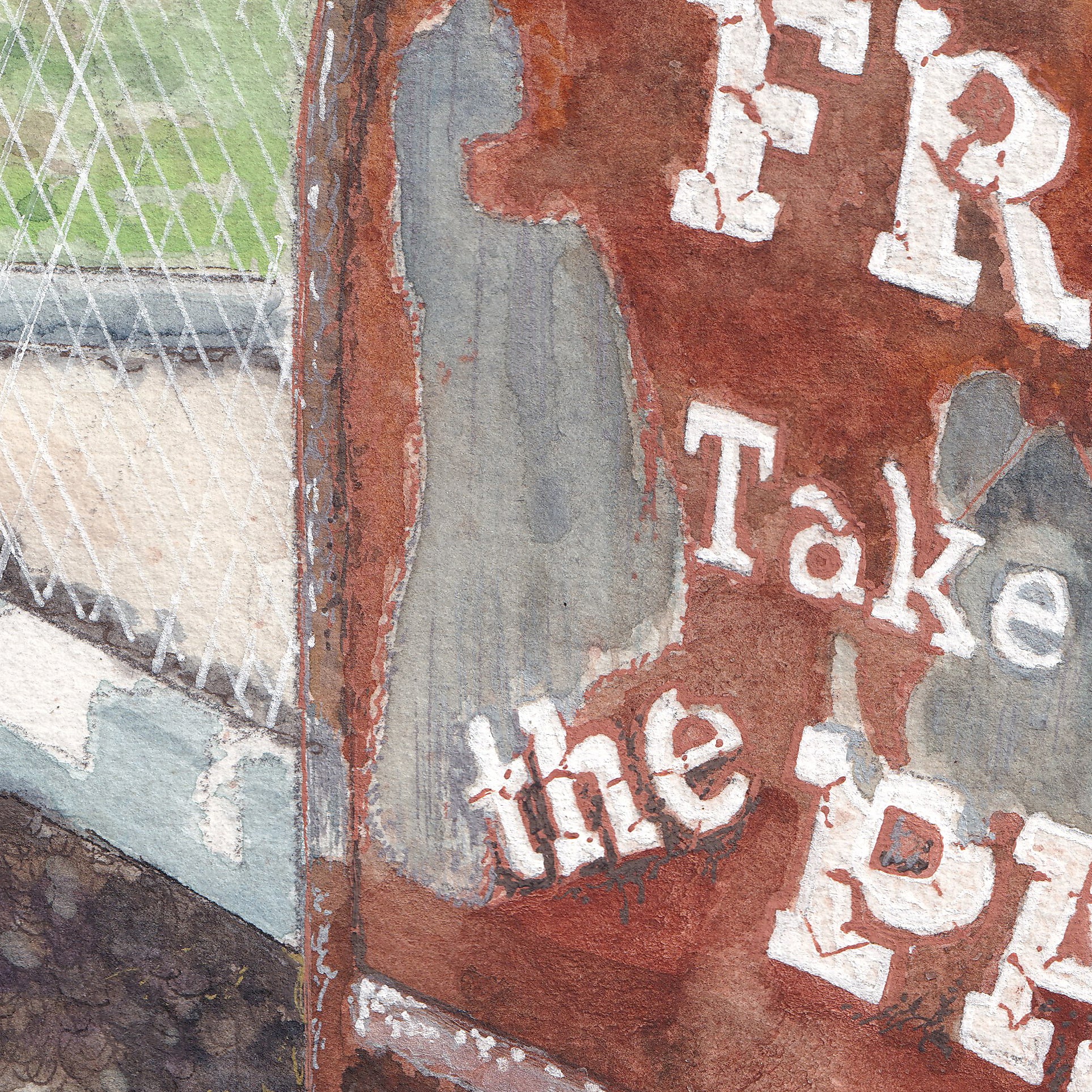 This painting captures a humble roadside moment centered on a rural mailbox and a weathered newspaper holder. Faded lettering on a mailbox peels against rusted metal, while another mailbox bears the name Dixie Haven, grounding the scene in a specific place and routine. Textured washes and earthy tones emphasize age, use, and quiet repetition. The piece reflects the simplicity of small-town life—where information is shared freely, neighbors pass by slowly, and everyday objects become markers of community and connection.